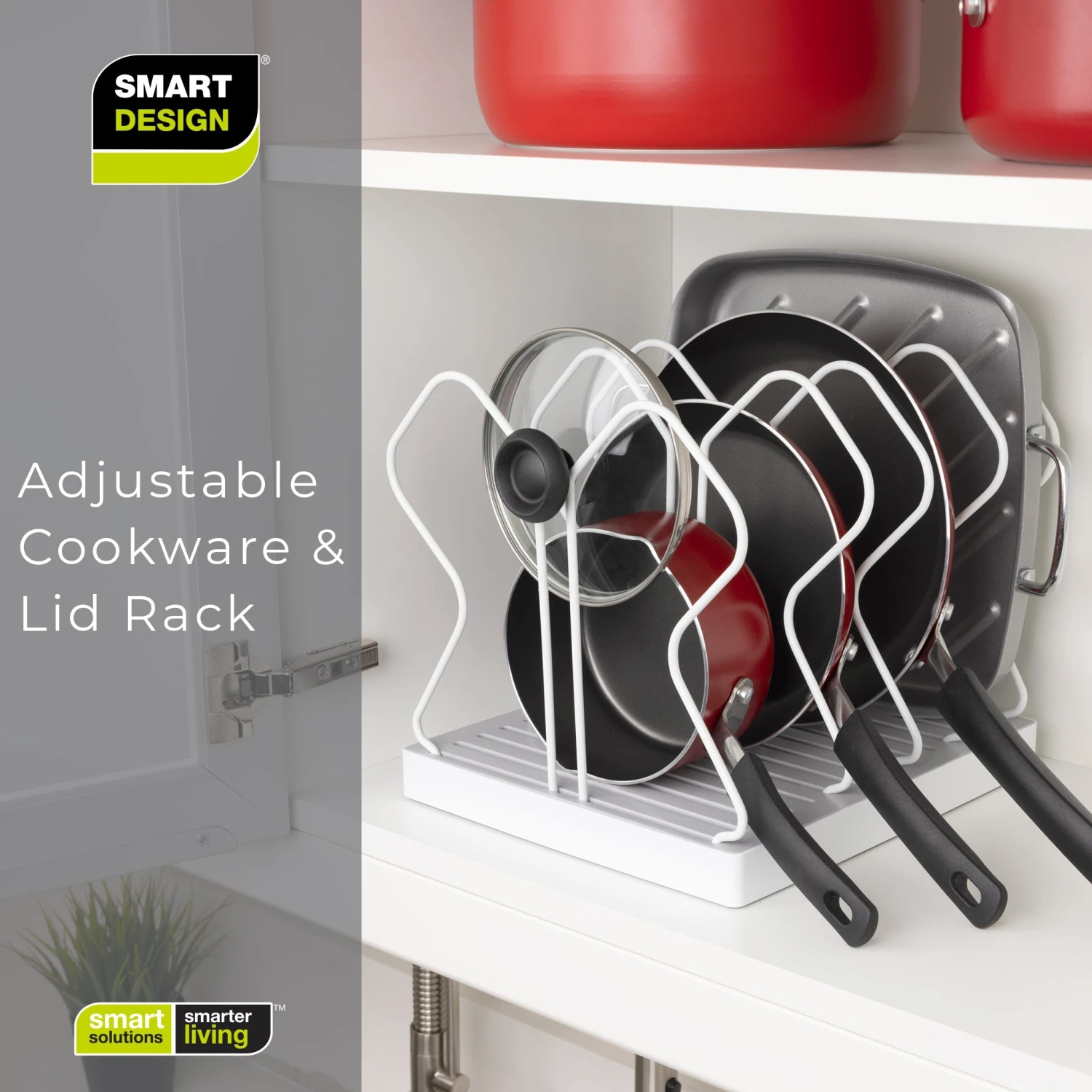 Sturdy base with non-slip feet ensure pans, lids, and bakeware stay securely in place.