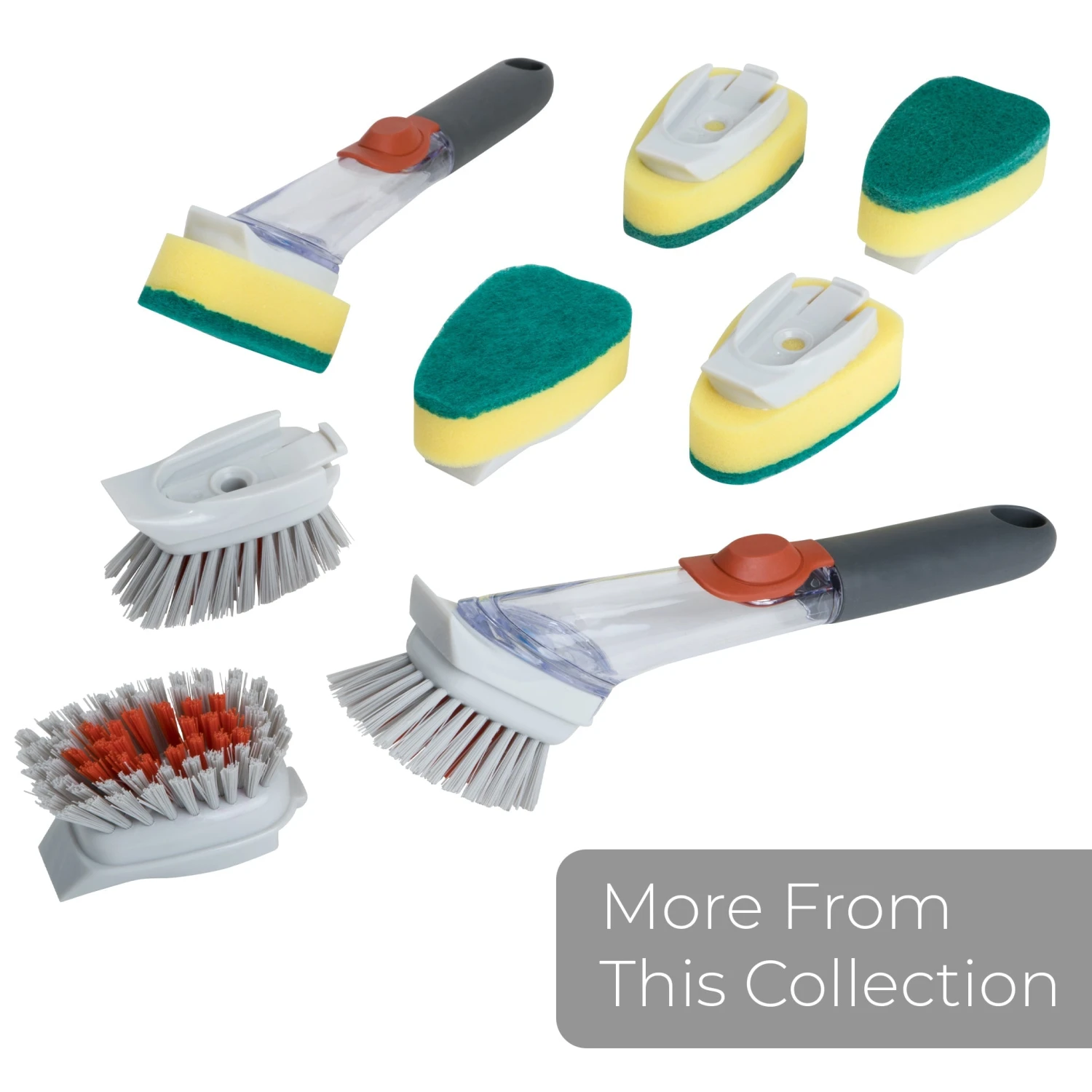 Includes (2) non-scratch dish sponge refill heads, made with an absorbent sponge and built-in scraper.